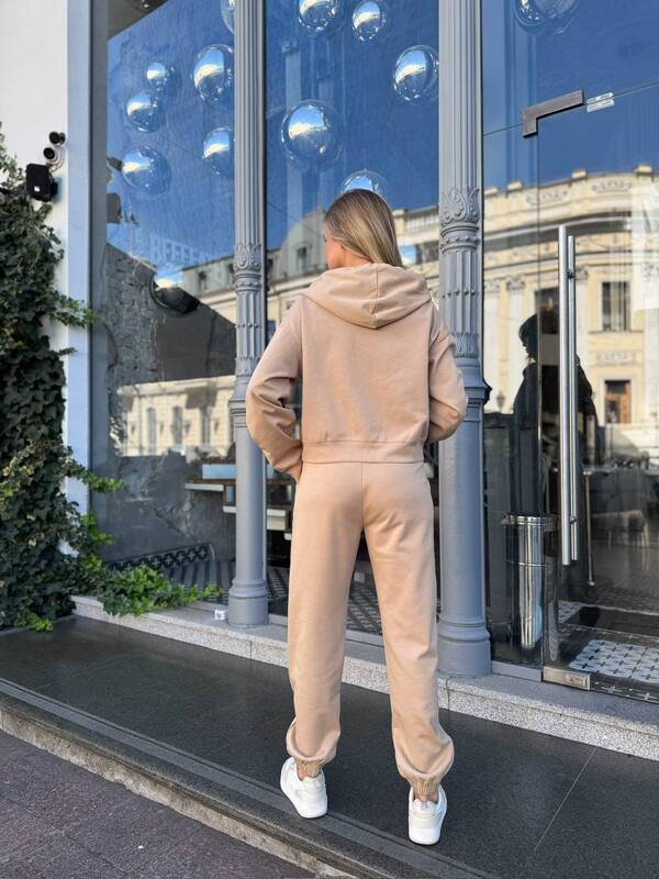 Этот костюм универсален и легко сочетается с кроссовками, аксессуарами и верхней одеждой. Подходит для прохладных осенних дней, создавая уютный и современный повседневный образ.