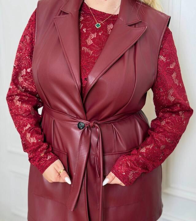 - Ткань: Мереживний лонг+ подовжена жилетка з еко шкіри