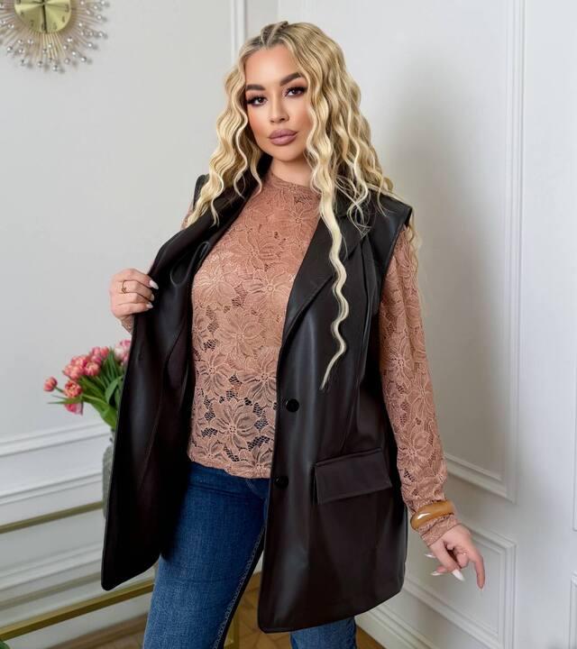 - Ткань: Мереживний лонг+ подовжена жилетка з еко шкіри
