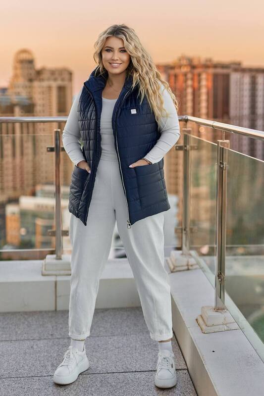 Модель оснащена удобной молнией по всей длине, которая делает её практичной в использовании и позволяет легко регулировать посадку. Высокий воротник защищает от холода и ветра, создавая ощущение уюта и стиля. Большие удобные карманы не только практичны, но и дополняют дизайн, сохраняя гармоничный вид. Жилетка прекрасно сочетается с джинсами, брюками, спортивными костюмами и трикотажем, позволяя экспериментировать с образами — от повседневных до более спортивных.